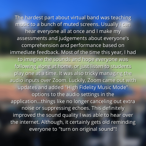 What is one thing that you wished you knew sooner while teaching band virtually, or anything you wish you could do differently?